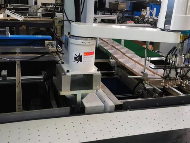 The machine consists of automatic paper feeder, gluing unit,automatic cardboard feeder,Dual-box and Case Visual-position system with Robotic Arm. It adapts to both Dual-box positioning and case positioning and Inner case paper positioning.The advanced visual position system and stable Robotic-arm to achieve intelligent operating and durable machine life at the meantime it is a cost-effective solution for box and case packaging.